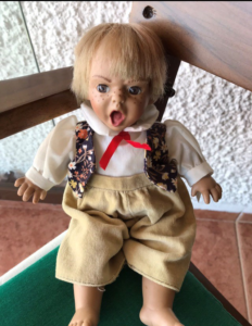 Bu bebekleri geçtiğimiz bir yaz Alaçatı pazarından aldım. Bir tezgahın üzerinde irili ufaklı, oyuncakların arasında duruyorlardı. Esmer derili bir çocuğu temsil eden aşağıdaki figür beni çok etkiledi. Onun aracılığı ile içime işleyen karmaşık duygular yanı sıra bir objeye yüklenen ruhun böylesine iyi ifade ediliyor olması da üzerimde büyük bir hayranlık uyandırdı.